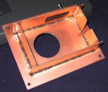 Wir basteln uns aus Platinenmaterial einen Halter für die Digicam. Die Schraube oben fixiert den Auslöser, damit die Serienbildfunktion laufen kann.
