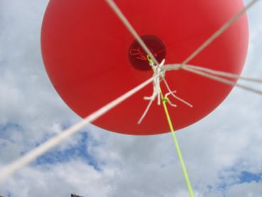 Mit einem großen Heliumballon lassen sich viele Spielereien machen. Ein Beispiel ist die Aufnahme von Bildern aus 100m Höhe mit einer Digicam.