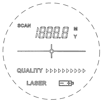 Benutzt werden offensichtlich : 28 Segmente 4x7 Segment-Ziffern 2 Segmente 1x die führende 1 1 Segmente Dezimal-Punkt 10 Segmente Quality-Dreiecke 7 Segmente Meter / Yard / Battery / Quality / Laser / Scan / Zielkreuz