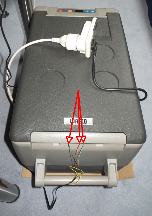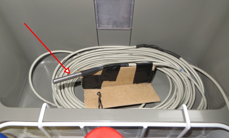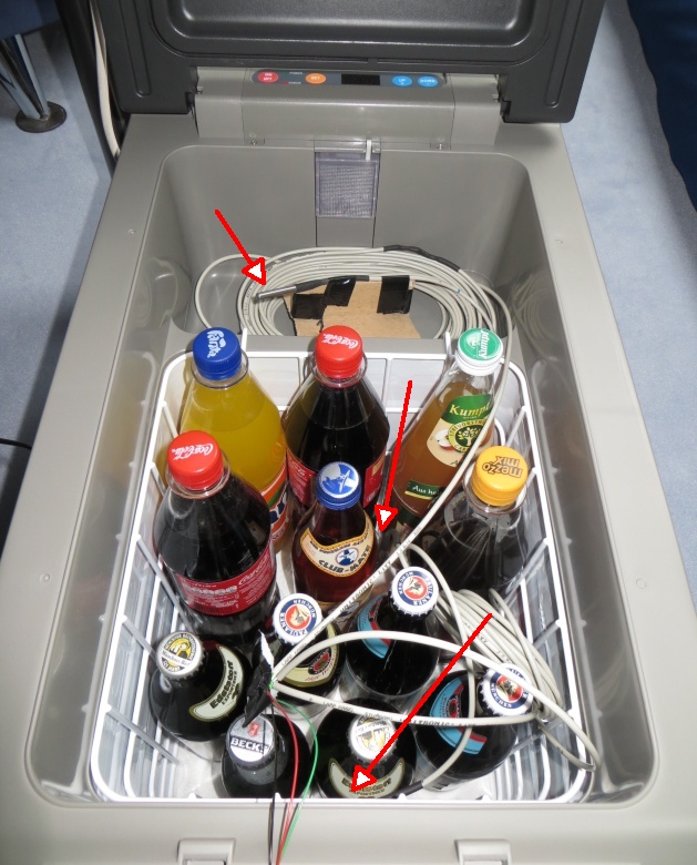 Temperatursensoren haben wir 3 im Innenraum. Einen an der Kühlboxwand :