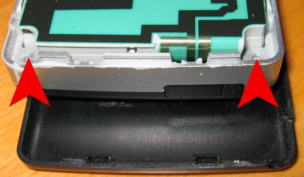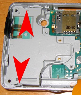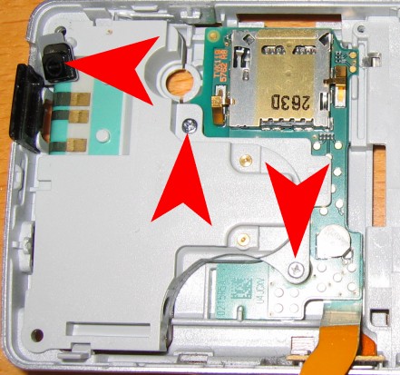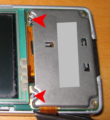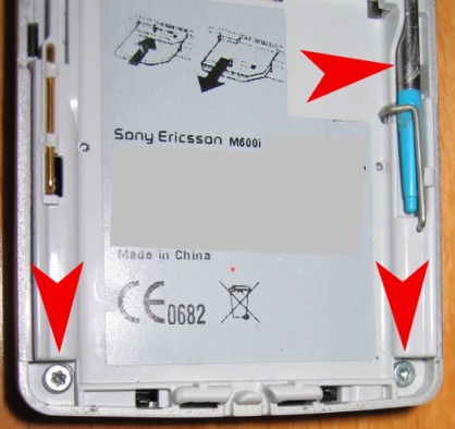 1. Zuerst Handy ausschalten, Akkuabdeckung abnehmen und Akku raus. Dann den Stift entnehmen. Die unteren beiden sichtbaren TORX Schrauben herausdrehen :