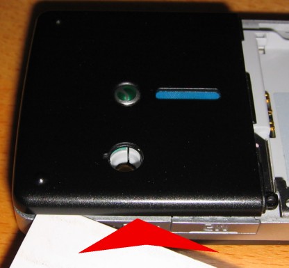 3. Mit einer Plastikkarte (z.B. Telefonkarte) von unten rechts anfangen den Deckel nach oben herauszuklipsen :