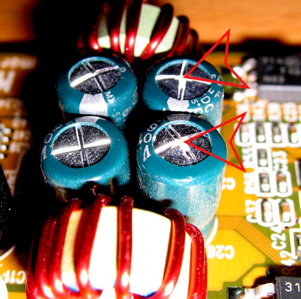 Nach kurzer Analyse ist die Geräuschquelle schnell gefunden : Mindestens ein ausgelaufener Elko.