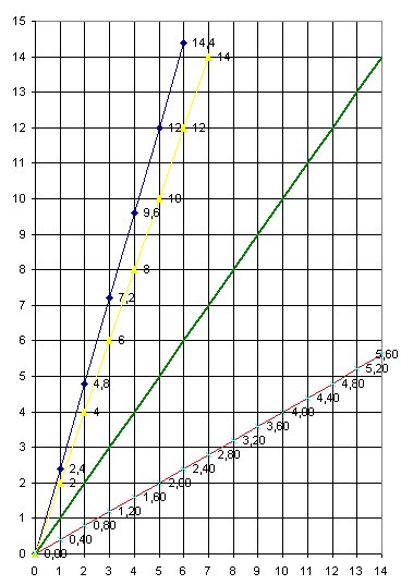 Durch diesen Trick liegt die Gerade immer unter 45 Grad (hier die rote Linie)