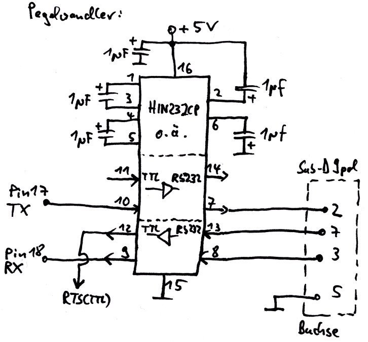 Der Pegelwandler (z.B. HIN232 oder MAX232 o.ä.):