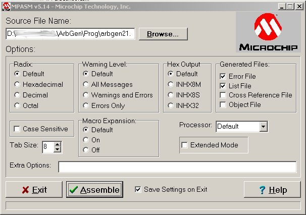 Dann den Source-Code neu kompilieren mit den MPASMWIN.EXE :