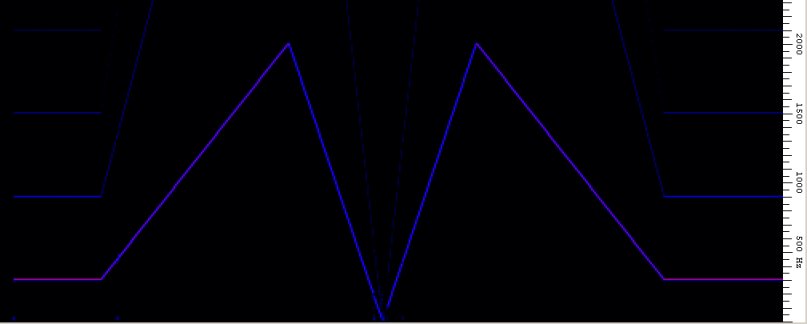 Das zweite große Problem ist, das die Timer welche die Frequenz erzeugen sollen nur mit einer Zeit geladen werden können. Da aber alle Millisekunde ein Frequenzschritt berechnet wird, muss dieser noch umgerechnet werden in Zeit. Dafür ist eine Division nötig. Durch diverse Tricks wird der Wertebereich der 16 Bit Register stark erhöht (siehe Code).