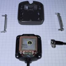 Auf einem Flohmarkt fand ich aktive Antennen von Trimble zum Preis von 20DM das Stück. Dazu habe ich mir aus zwei CMX-Steckern, einem Stück Teflonkabel und einer SMD-Induktivität einen Adapter gebaut. Dieser verbindet die beiden Antennen miteinander und versorgt die Antenne mit +5V (ca. 25mA).