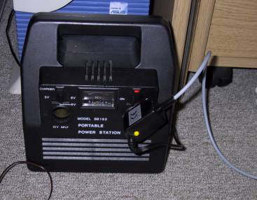 Datenkabel zwischen Garmin und dem PC. Das ganze wird über 12V versorgt, deswegen der Bleiakku …