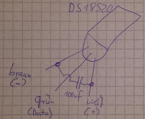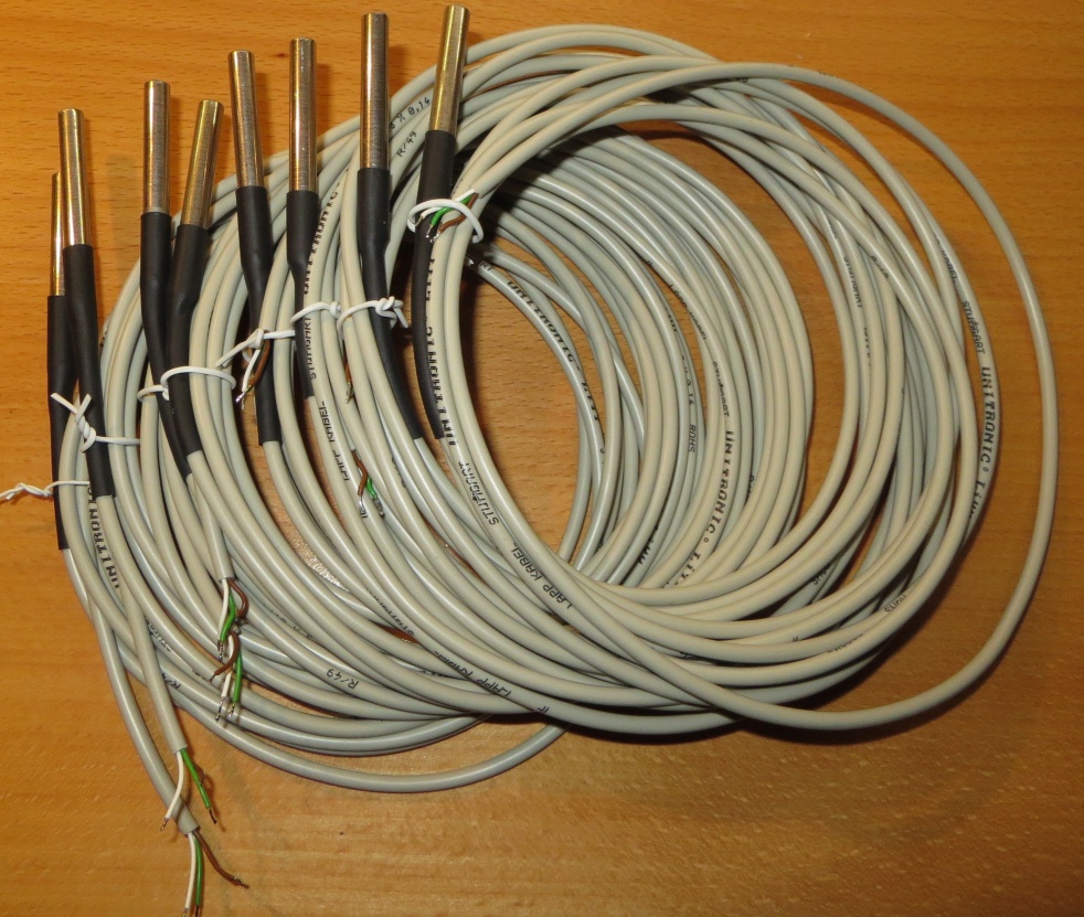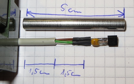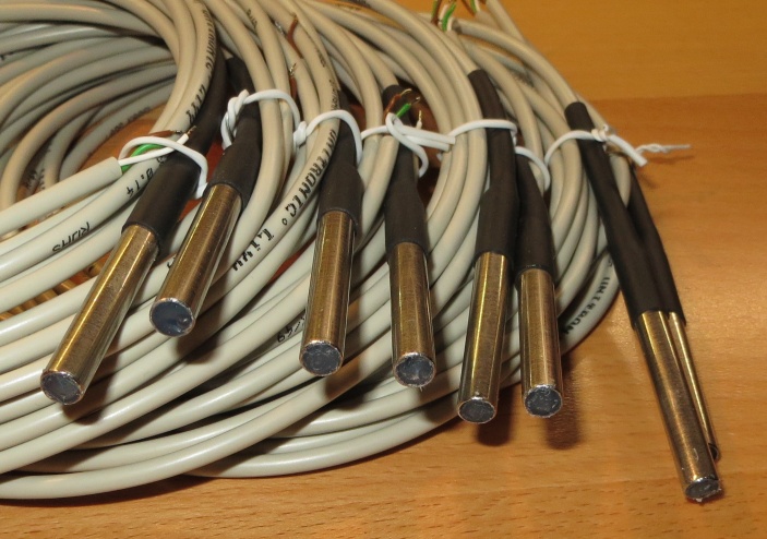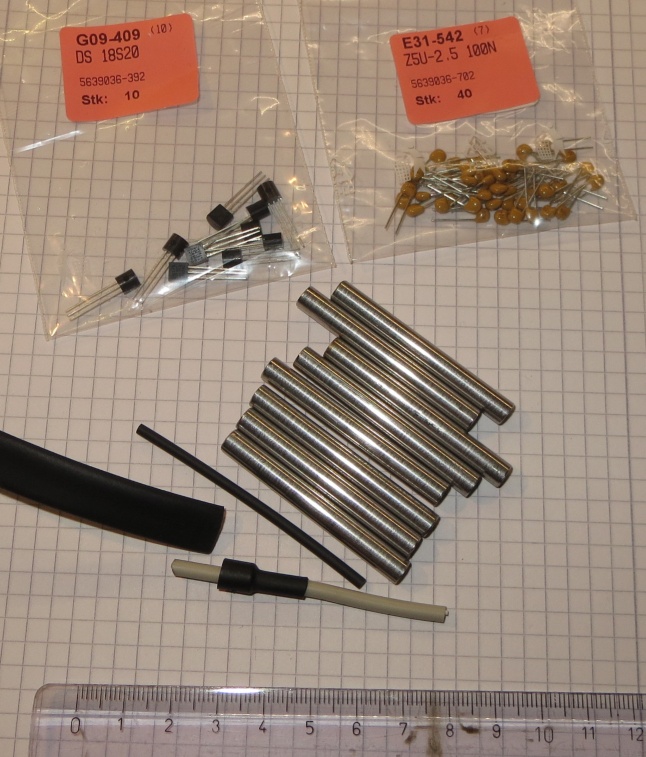 Zuerst braucht man Temperatursensoren von Dallas DS18S20, einige 100nF Kondensatoren, als Gehäuse Edelstahlröhrchen und dreiadriges Kabel.