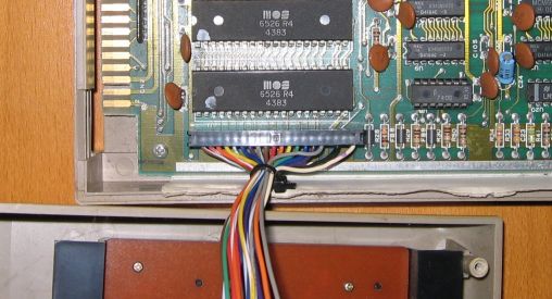 Die Tastatur ist über ein 18poliges Kabel an die Hauptplatine angeschlossen und geht direkt an den 6526 CIA Baustein: