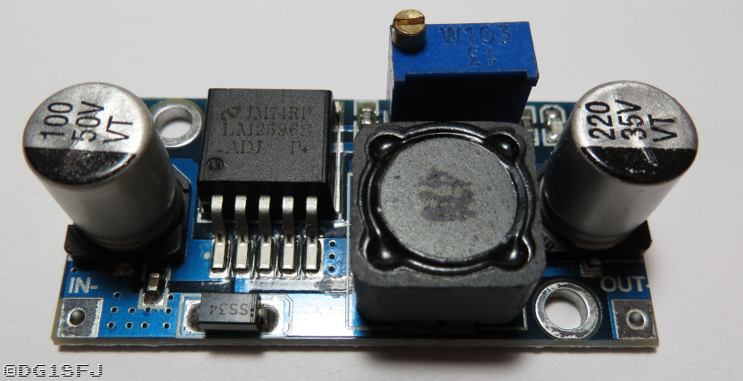 Beispiel eines DCDC Wandlers (Buck) mit dem LM2596S. Die Dinger gibt es fertig für ein paar Euro in der Bucht.