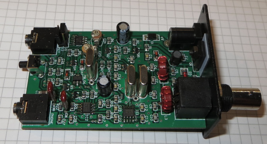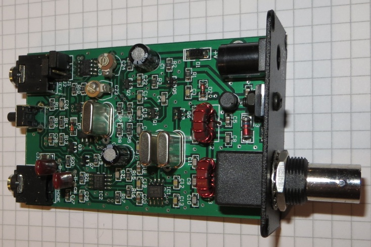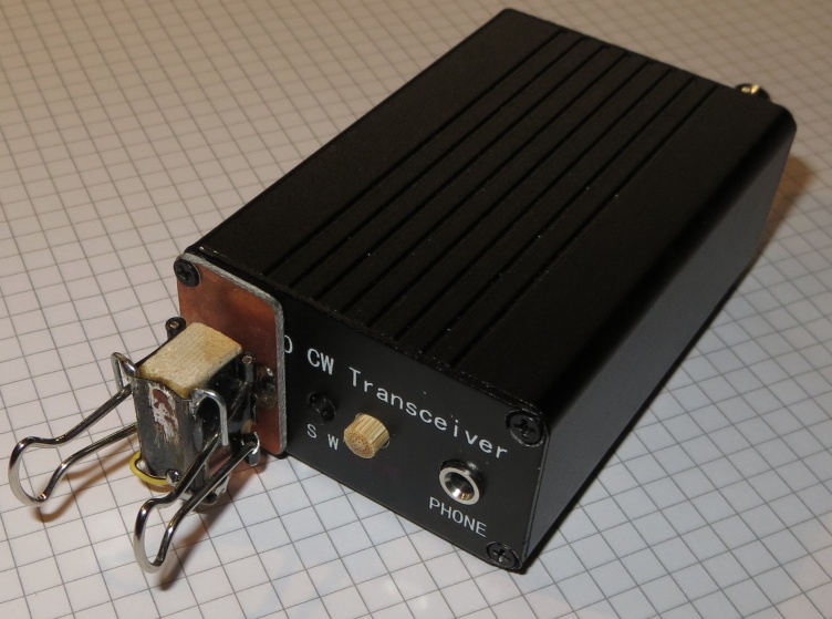 Von http://crkits.com aus China gibt es einen netten kleinen Bausatz für einen Einkanal CW Transceiver. Die Platine ist SMD-vorbestückt, nur die größeren Teile müssen aufgelötet werden. Gehäuse ist mit dabei.