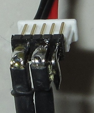 Hier kann man den Vorteil der 2reihingen Stiftleiste erahnen. Immer 4 Pins ergeben einen Block mit Minus oder Plus, können also zusammengelötet werden. Damit ist gesichert das die Pins nicht rausrutschen. Mutwillig verpolen geht natürlich …
