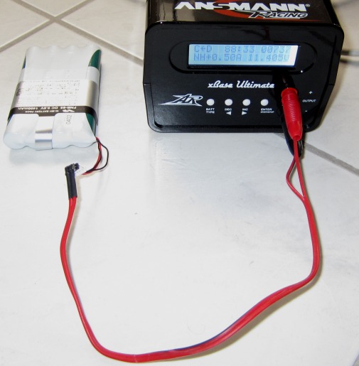 Der Ladevorgang wird über geöffnetem Deckel vorgenommen, Ladung mit wenig Strom über die Balancer-Anschlüsse :