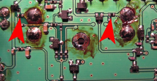 Zur Ankopplung des ursprünglich verbauten CFJ455K14 Filter befanden sich im FT817 2 Kondensatoren mit je 10nF. Beim FT817 ND dagegen sind an dieser Stelle 2×466 Ohm Widerstände verbaut :
