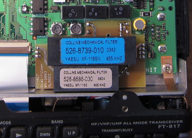Im FT817 läßt sich ja normalerweise nur ein optionales Filter bestücken, so das man sich entscheiden muss ob SSB oder CW Filter. Dank einer kleinen Leiterplatte von Thorsten DL9SEC kann man nun beide Filter zeitgleich bestücken (Funkamateur Heft 1/2004). Das gute SSB Filter von Collins ersetzt dann das „günstige“ Murata SSB Filter.