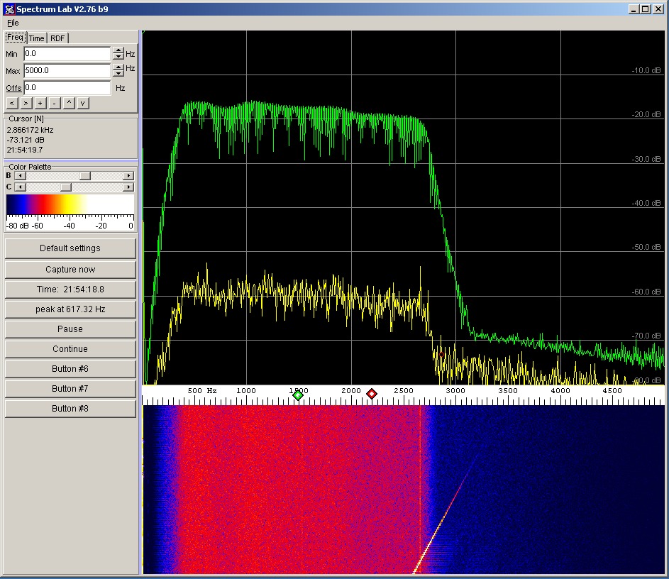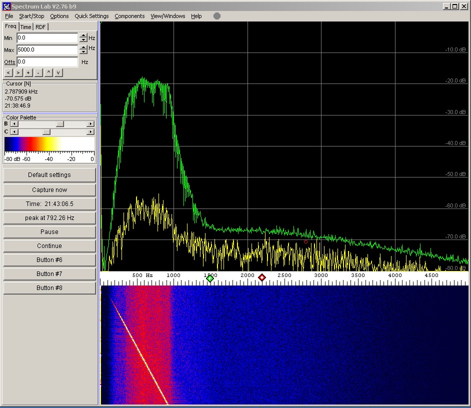 Fürs FFT mit Peak Hold kommt am besten Spectrum Lab von DL4YHF zum Einsatz mit folgenden Einstellungen :