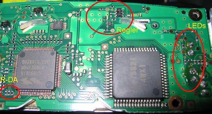 Hier noch markiert, wo sich diese auf der Platine befinden.