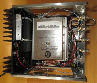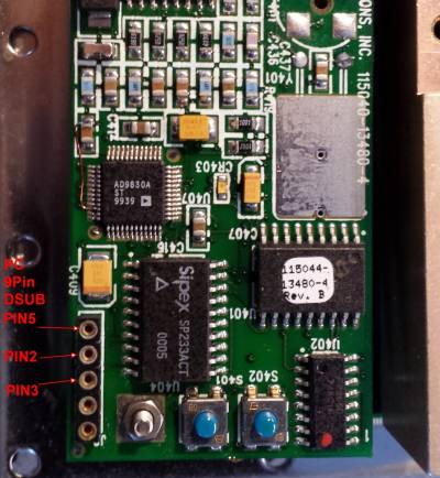 In der Bucht gibt es zur Zeit günstige Rubidium Frequenzsstandards zu kaufen. Diese sind auf kommerziellen Einschubplatinen verbaut und werden wohl in Hongkong einfach rausgesägt. Die Dinger waren also schon im Einsatz aber sowas musste einfach mal her. Das Teil ist von FEI Communications und heißt FE5680A und läßt sich via serieller Schnittstelle auf eine Festfrequenz von 1Hz bis 20MHz einstellen. Nach dem Kauf muss man also den Deckel lüften und erstmal den Computer anschließen. Von einer 9poligen normalen RS232 braucht es drei Drähte :