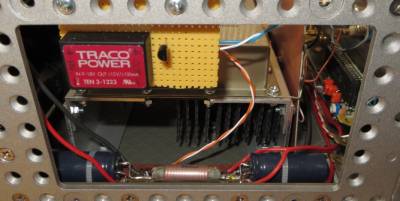 Erzeugung einer galvanisch getrennten Hilfsspannung für das Amperemeter in der Frontplatte (15Vin → 15Vout → Spgs.Regler auf 9V)