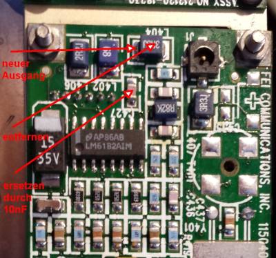 Da beim Kauf die Filter nicht für 10MHz ausgelegt sind (häufig für 1Hz), muss die Schaltung noch etwas umgebaut werden damit bei 10MHz auch mehr Dampf rauskommt :